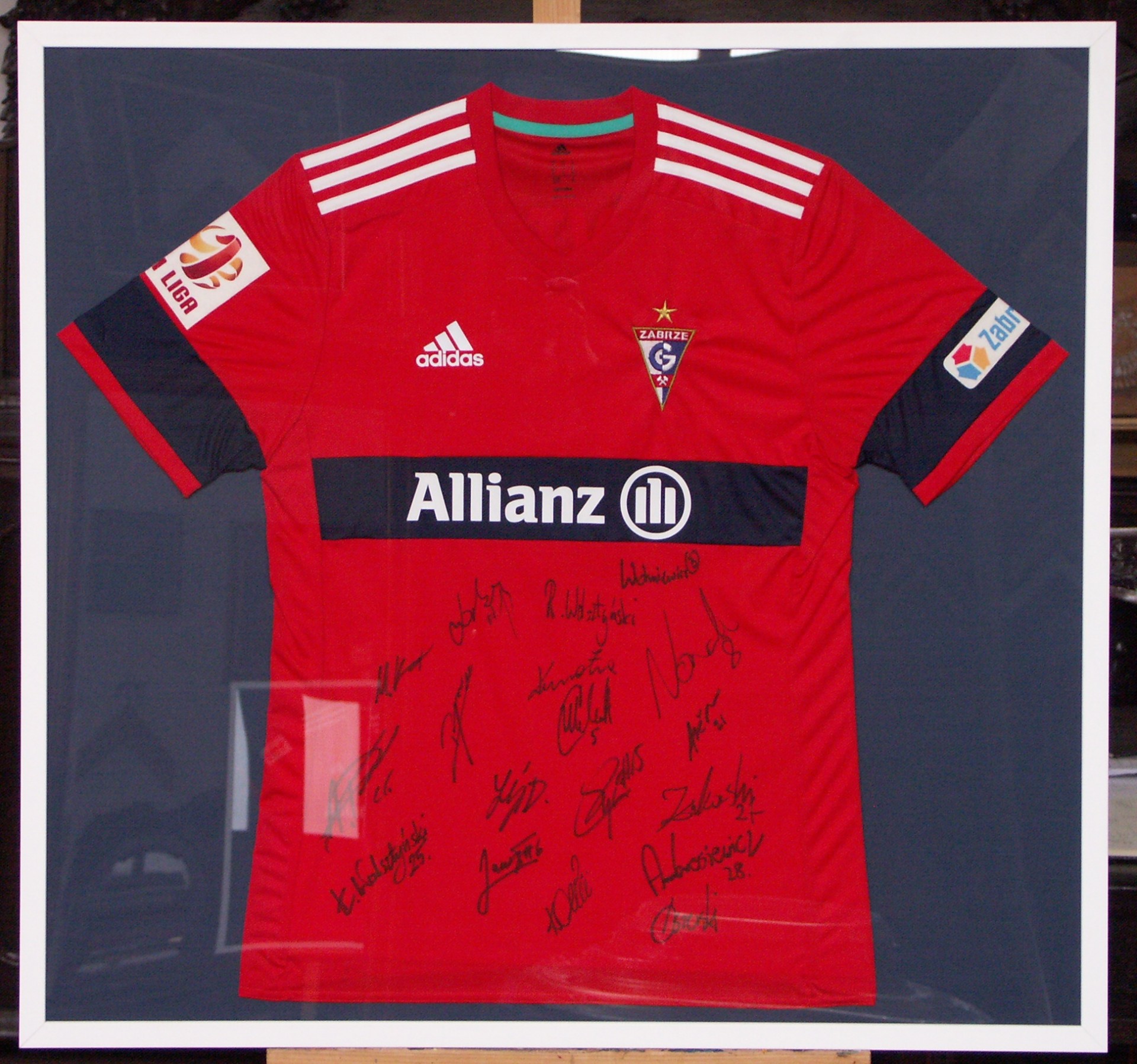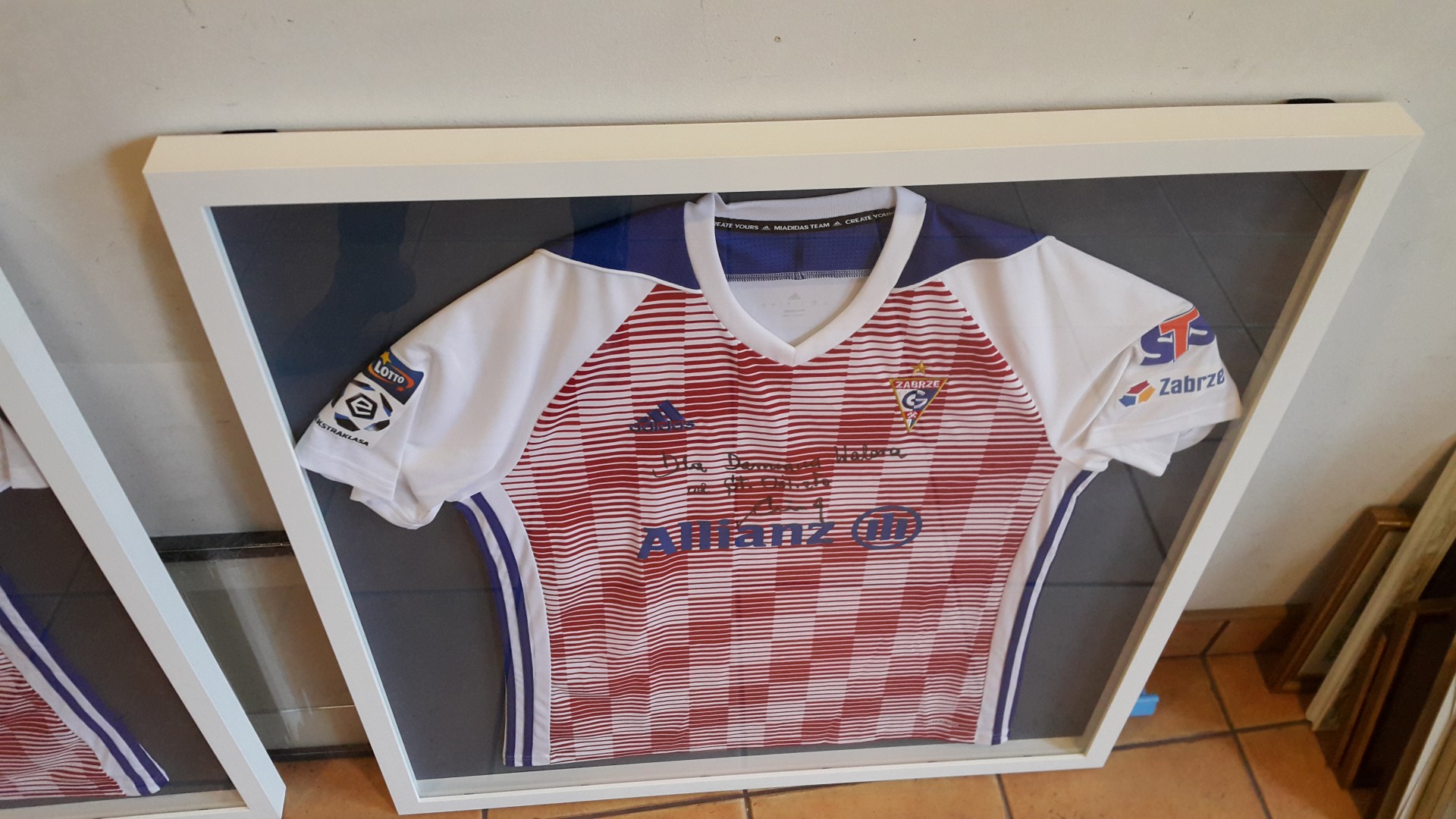 Oprawiamy koszulki piłkarskie ale także koszulki pamiątkowe ważne i cenne dla naszych klientów. Listwa zastosowana do oprawy musi być wysoka tzw.skrzynkowa aby pomieścić na wysokość tkaninę , podkład , szkło i plecy.