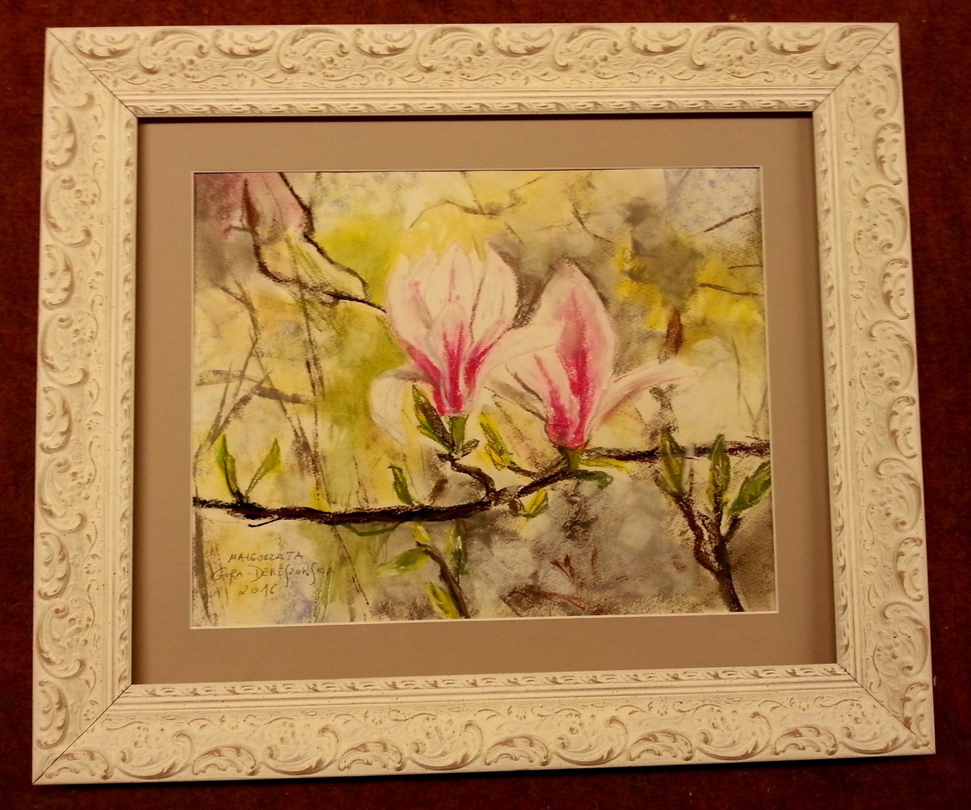 Tak powstałe obrazy trzeba równie delikatnie ująć w passe-partout i w ramę.