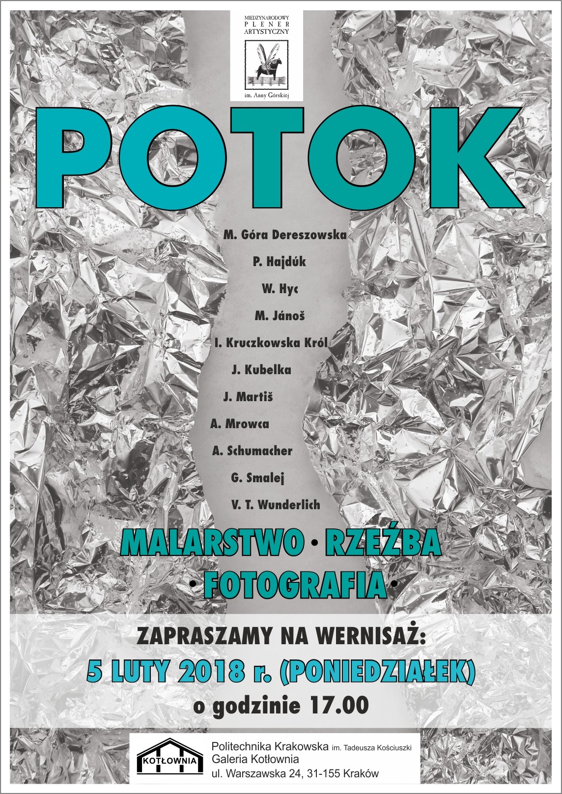 POTOK międzynarodowa wystawa malarstwa , rzeżby i fotografii w Galerii KOTŁOWNIA Politechniki Krakowskiej im. T. Kościuszki w Krakowie .